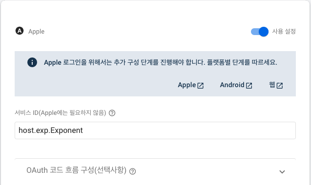 애플 로그인의 경우 expo 환경에서 지원을 해줍니다. 이전에는 rn의 기본을 사용해서 사용했는데