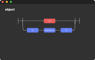 - <object>는 중괄호({}) 안에 <elements>가 들어가거나, 비어있는 중괄호({})입니다.