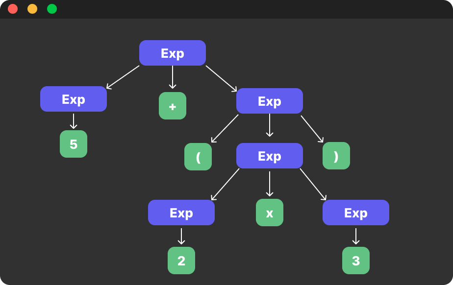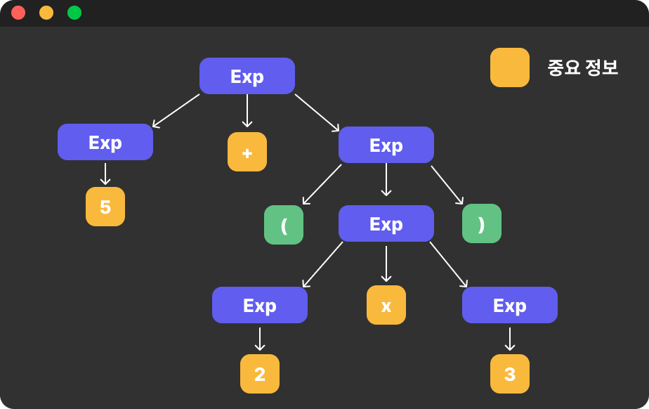 11이라는 결과를 얻기 위해서는 괄호와 (), Exp에 관한 정보들은 없어도 이해하는데 아무런 문제가 없겠죠