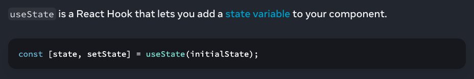 공식문서에서는 다음과 같이 useState를 소개한다.