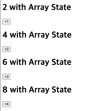 이렇게 바꾸면 useState를 여러 번 선언한다 하더라도 각각의 독립적인 상태를 가지게 되는 것을 확인할 수 있다.