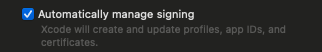 이 문제의 원인은 Automatically manage signing에 있었습니다.