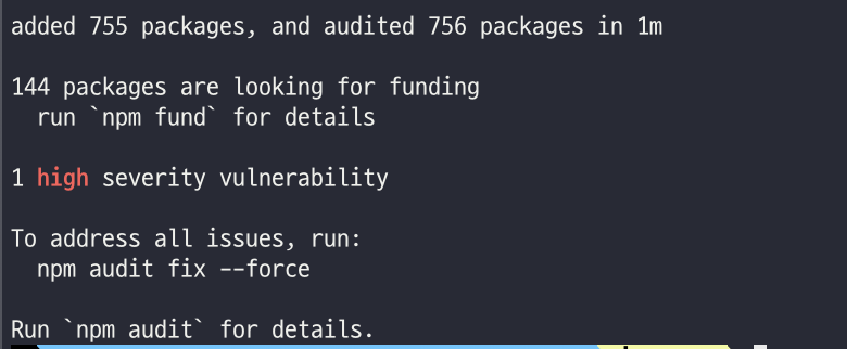 이러한 문제를 해결하기 위해 npm 측에서는 npm audit를 지원하여 이 보안 문제를 해결할 수 있습니다.