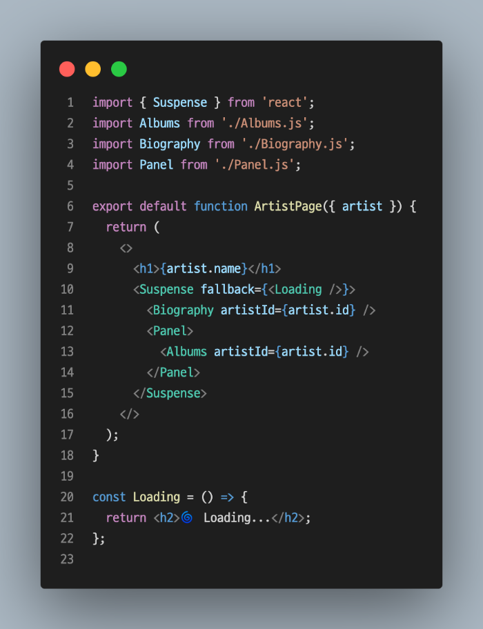 이를 좀 더 좋은 방식으로 풀어내기 위해서 React 팀은 Susepense를 세상에 공개했습니다.