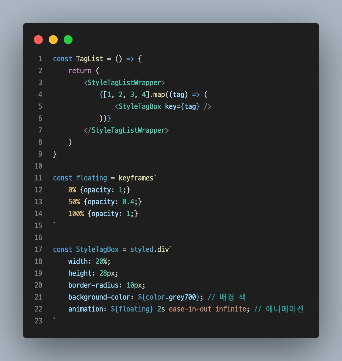 위에서 더 작은 단위인 태그 리스트에 대한 스켈레톤 UI를 만들어야 한다고 가정해 볼게요.